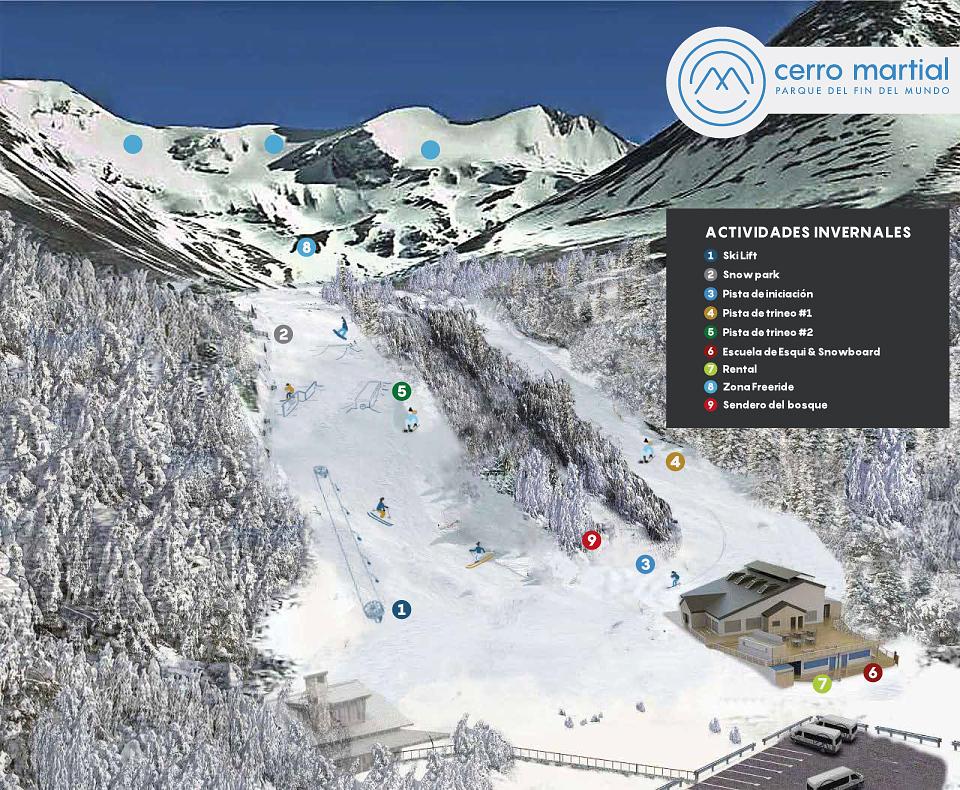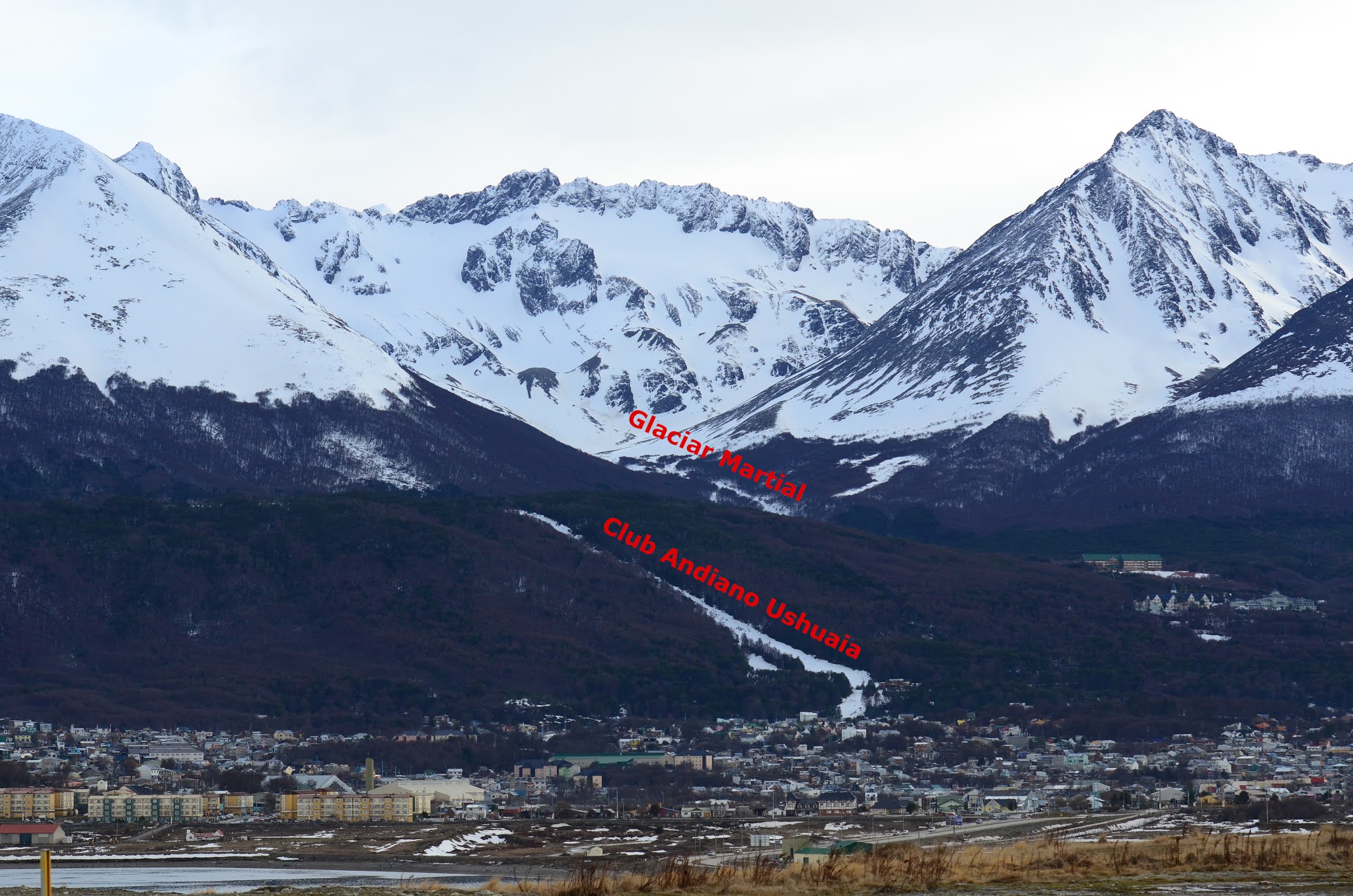 Cerro Martial is a mountain located in Ushuaia, Argentina, offering breathtaking panoramic views of the city and the Beagle Channel. It's a popular tourist destination for hiking and skiing, with a ski resort nearby. The mountain is accessible year-round, with the ski season typically running from early July to early October. The resort offers a range of activities, including skiing, snowboarding, and snowshoeing. The mountain's natural reserve is also home to the Martial Glacier, a stunning glacier that offers an incredible view of the surrounding landscape.