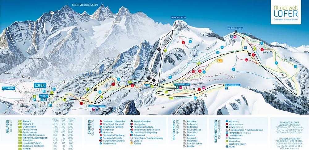 Almenwelt Lofer is a family-friendly ski resort in Lofer, Austria, known for its well-maintained slopes and good lift systems. It offers 46 km of trails, 11 lifts, and a variety of downhill runs suitable for all skill levels, including easy and intermediate slopes. The resort is particularly popular among families and beginners, with two child-friendly 8-seater chairlifts.