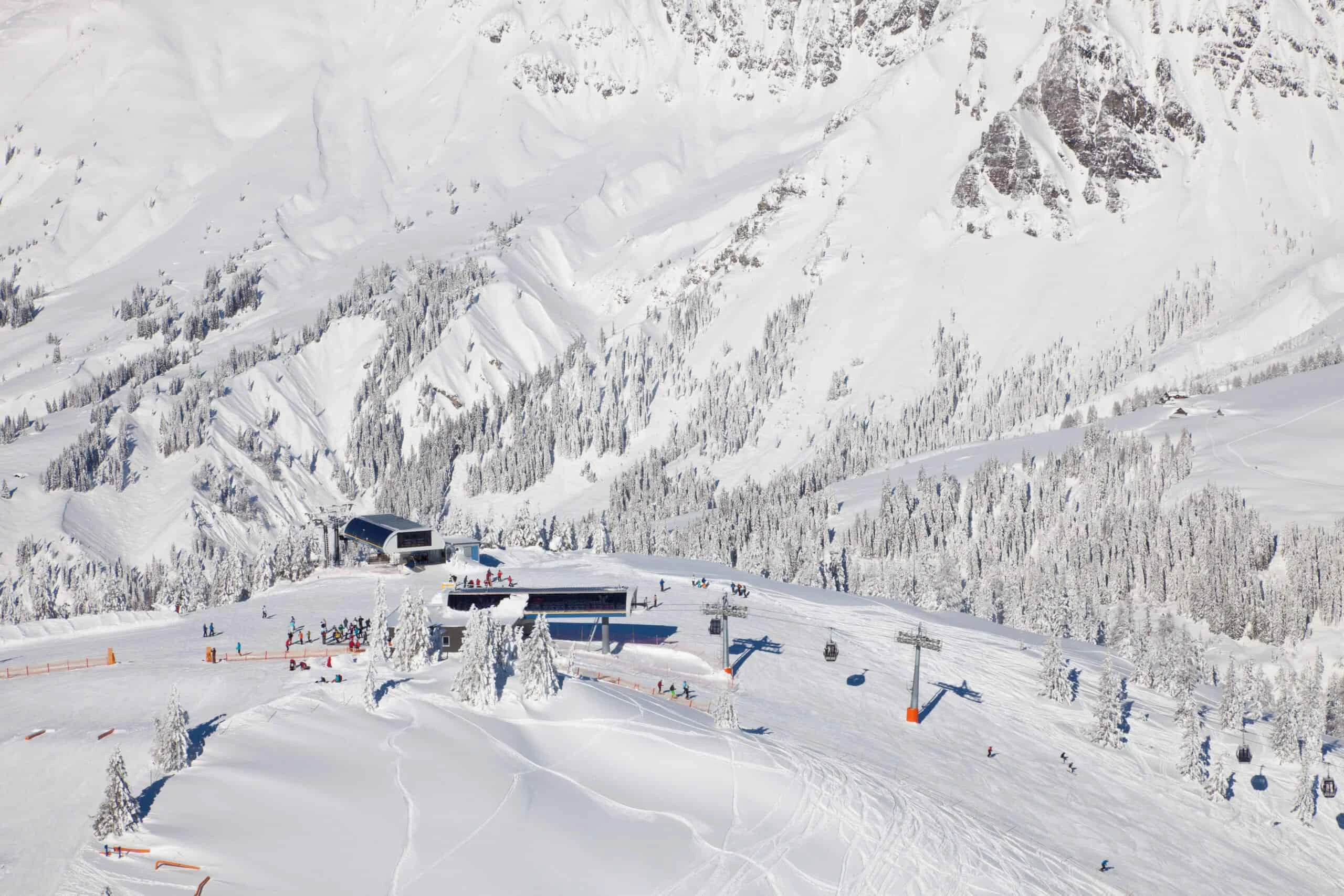 Hochkeil is a ski resort located in the Austrian Alps, specifically in the Salzburg region. It offers a natural snow skiing area with 1,300-1,784 meters of altitude, suitable for all levels of skiing and boarding ability. The resort has 120 km of pistes, 33 lifts, and 95% of its runs are covered by snow. It's part of the larger Hochkönig ski region, which offers 35 continuous kilometers of slopes and various snow parks and freeride areas. Hochkeil is known for its stunning views of the Austrian Alps and is a popular destination for freeriders and families.