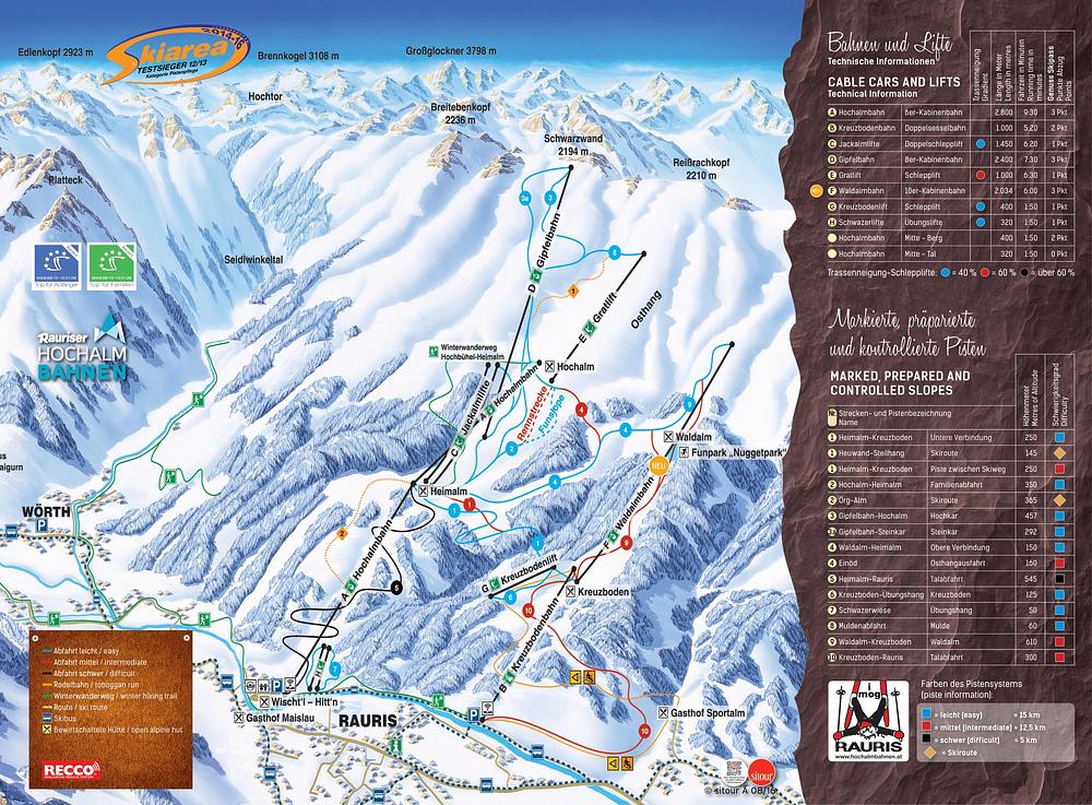 Skigebiet Raurisertal is a ski resort located in Rauris, Austria, in the state of Salzburg. It offers a unique powder snow paradise with north-east facing slopes suitable for all levels, from beginners to professionals. The resort has 33 kilometers of slopes and is a small, easily negotiable ski area. It's a great destination for families, with affordable prices and a variety of trails for all skill levels. The resort also offers summer hiking trails, playgrounds, and alpine huts.