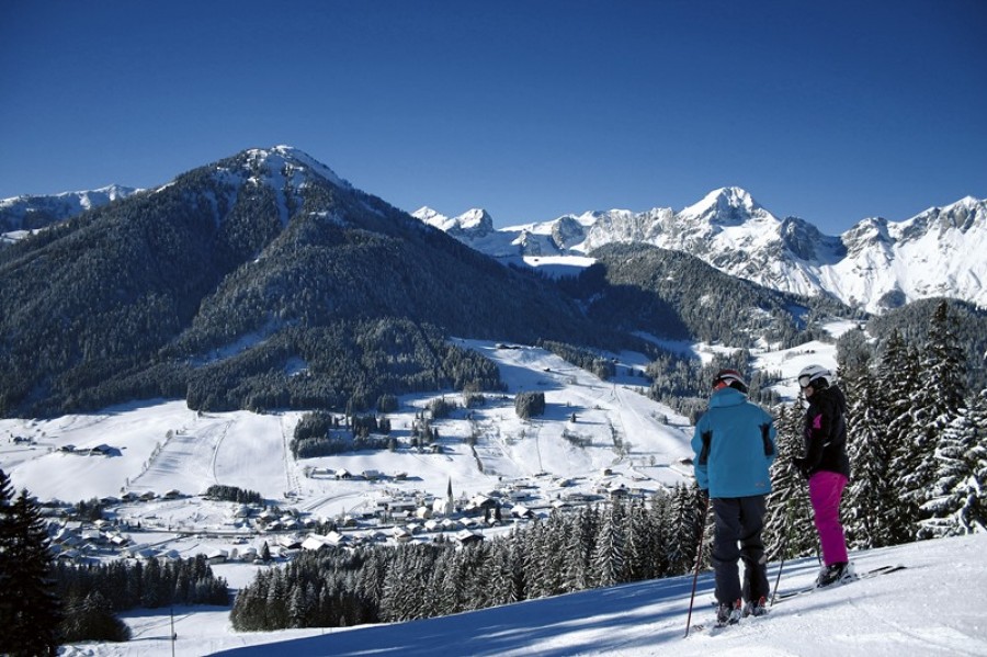 St. Martin im Tennengebirge is a ski resort in the Austrian Alps, offering skiing on 6km of pistes up to 1350m altitude. The resort is part of the Dachstein West ski region and the Ski amadé alliance, providing access to 160km of pistes. It's a family-friendly destination with a small ski area, a toboggan run, and winter hiking trails. The resort is open from mid-December to mid-March, with day passes available for around €33.