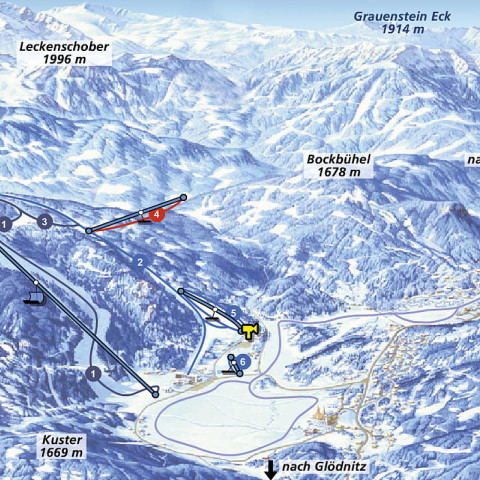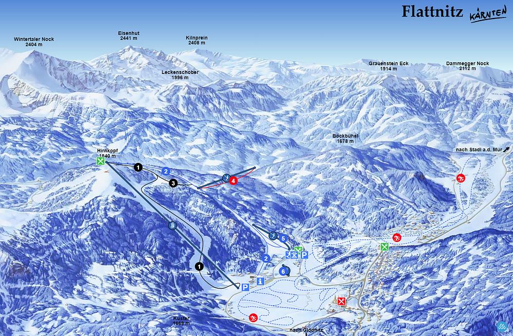 Skigebiet Flattnitz, located in Glödnitz, Austria, is a family-friendly ski resort offering masses of snow, gentle slopes, and high-speed pistes. The resort has 13 kilometers of well-groomed pistes, a 15-kilometer cross-country ski trail, and 4 lifts. It's an ideal spot for a winter holiday, with no fear of avalanches and suitable for all skill levels. The resort is open from early December to late March.