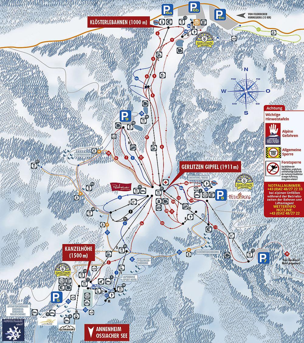 Here's a summary of Skigebiet Gerlitzen Alpe in 50-100 words: Located in Arriach, Austria, Skigebiet Gerlitzen Alpe is a ski resort that offers a range of winter sports activities. The resort has 21 lift systems and 34 ski runs, covering 53 km of slopes, with 99% of the area covered by artificial snow. The highest point is 1,911 meters above sea level. The resort is suitable for families and beginners, with a children's area and ski school. It's open from early December to early April, and offers a variety of dining options, including mountain huts and restaurants.