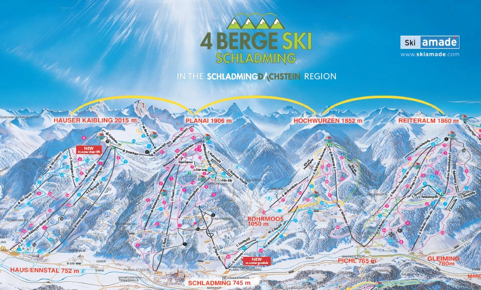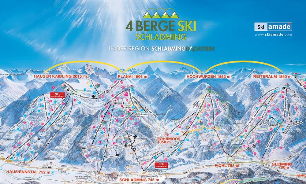 Planai is a renowned ski resort located in Schladming, Styria, Austria. It features 123 kilometers of pistes, 43 modern cable car and lift facilities, and 56 ski cabins offering culinary delights. The resort is part of the 4-Mountain Ski Area, which connects four mountain peaks, and offers a variety of activities, including skiing, snowboarding, and mountain go-karting. Planai has hosted the World Cup night slalom since 1997, attracting 50,000 spectators annually.
