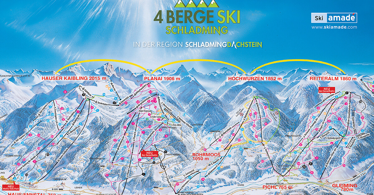 Reiteralm is a ski resort in Schladming, Austria, part of the Schladming 4-mountain ski area. It offers 123 kilometers of groomed slopes and is suitable for advanced skiers and snowboarders, with 23 kilometers of red-marked runs. The resort has a base elevation of 780 meters and is part of the Ski amadé network, which offers various ticket options and packages. The resort features modern ski lifts, cozy ski huts, and umbrella bars, making it a popular destination for winter sports enthusiasts.