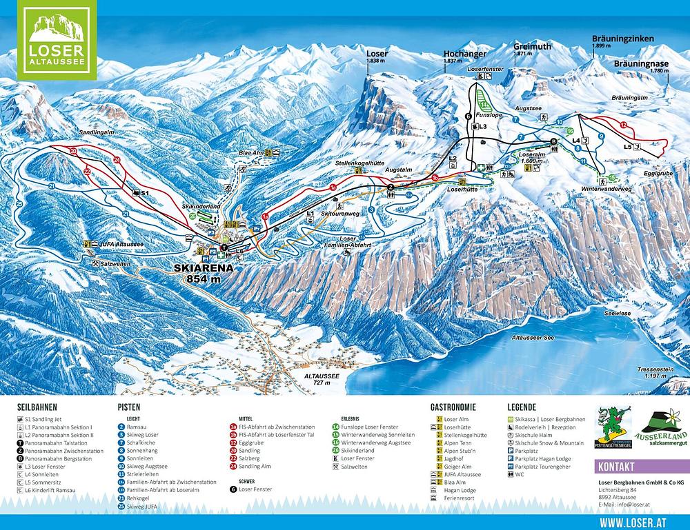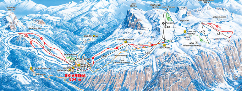 Here's a 50-100 word summary of Skigebiet Loser-Altaussee: Located in the Ausseerland Salzkammergut region of Styria, Austria, Skigebiet Loser-Altaussee offers 34 km of slopes for skiing and snowboarding. The ski resort has 8 lifts, including a new 10-seater panoramic lift, and caters to families with children. The slopes range from 850 to 1,650 meters above sea level, providing a varied range of terrain for all skill levels. The resort also offers hiking trails, scenic views, and cozy ski lodges and cabins serving regional delicacies. It's an ideal destination for a winter holiday with plenty of opportunities for outdoor activities.