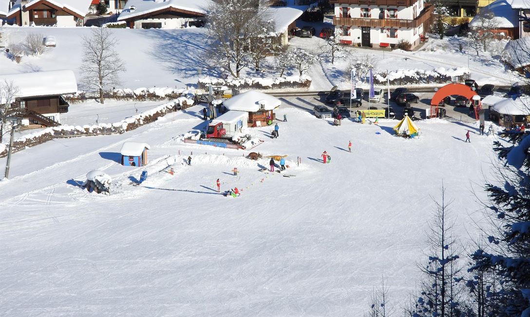 The Hausberglift - Waidring ski resort in Austria's Pillersee Valley offers a family-friendly experience with 2 lifts and 1 conveyor belt, catering to children and beginners. The resort features 1.5 km of groomed slopes, all of which are easy. The nearby Steinplatte Waidring resort offers a larger ski area with 9 km of slopes, including a 1.5 km snowpark for freestyle fun. The resort's altitude ranges from 781m to 897m, ensuring reliable snow conditions.