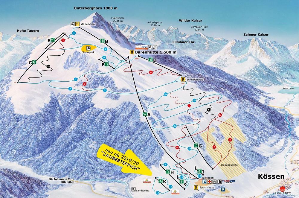 Hochkössen - Unterberghorn is a family-friendly ski resort in Kössen, Austria, perched on the 1,773-meter-high Unterberghorn. It offers 16 slopes, 11 lifts, and 22 kilometers of pistes, catering to various tastes and skill levels. The resort has a modern children's area and a large practice slope, making it an ideal destination for families. Despite its compact size, Hochkössen provides a range of skiing experiences, including a slalom run, with excellent views and well-maintained pistes.