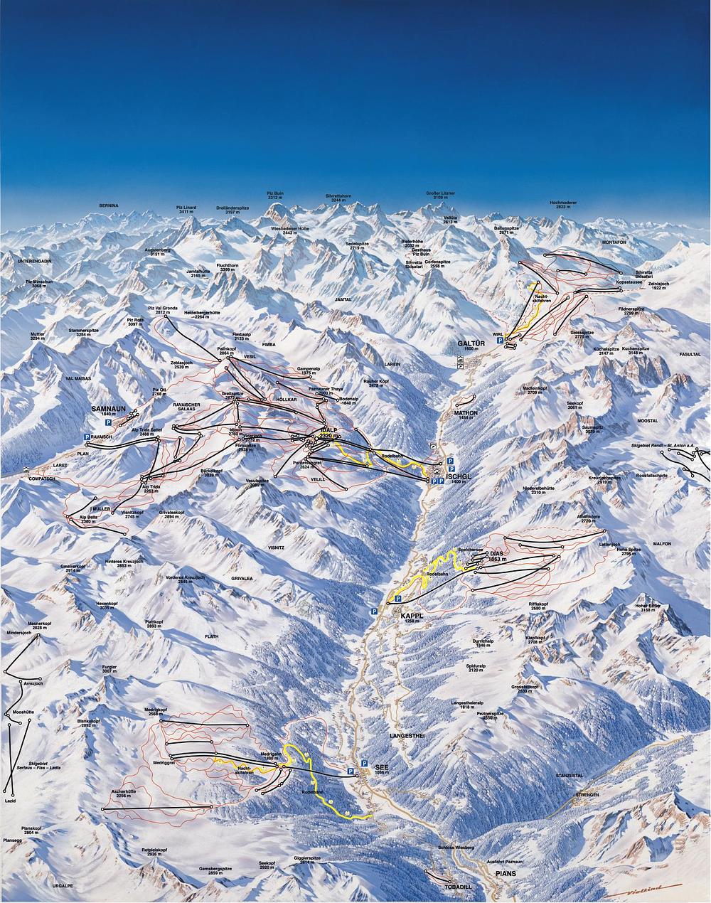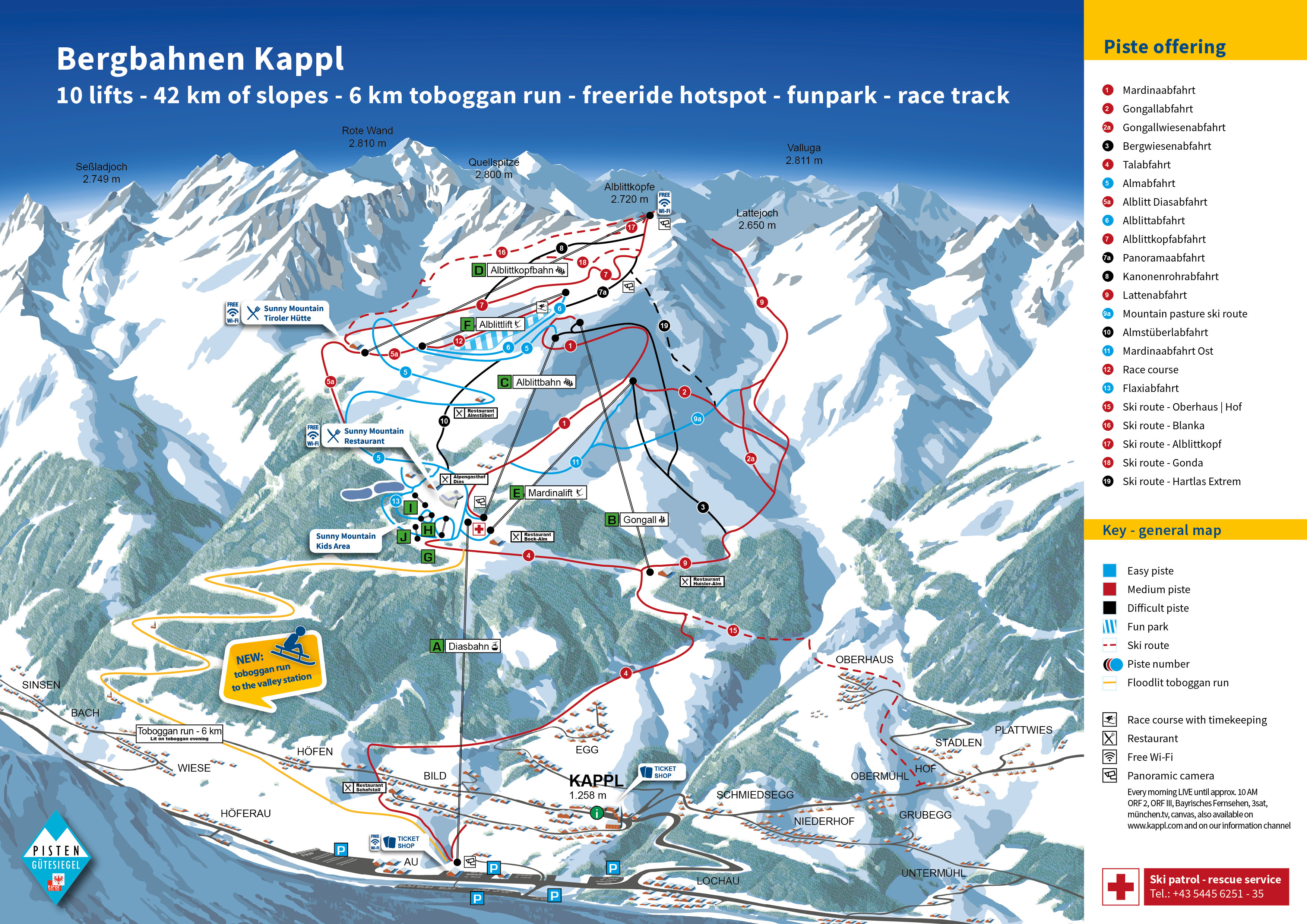 Kappl, a ski resort in the Paznaun valley of southwest Tyrol, Austria, offers a diverse skiing experience with over 80 kilometers of slopes. The resort boasts sunny south-facing slopes, thrilling north-facing slopes, and fun children's areas. With a range of pistes for beginner, intermediate, and expert skiers, Kappl caters to families and winter athletes alike. Its high altitude and sunny location make it a dream destination for skiers, with slopes reaching up to 2,700 meters.