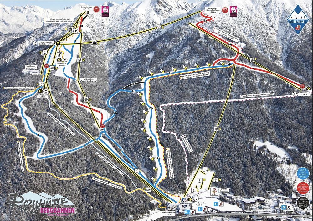 Seefeld - Rosshütte is a ski resort in Seefeld, Tyrol, Austria, offering a range of pistes for all skill levels. The resort is ideal for families and beginners, with 20 kilometers of slopes and two parallel training slopes. It also features a SkiMovie run with video recording. The resort has a mix of easy, intermediate, and challenging runs, making it suitable for both beginners and more advanced skiers. The scenic views and cozy huts add to the resort's charm.