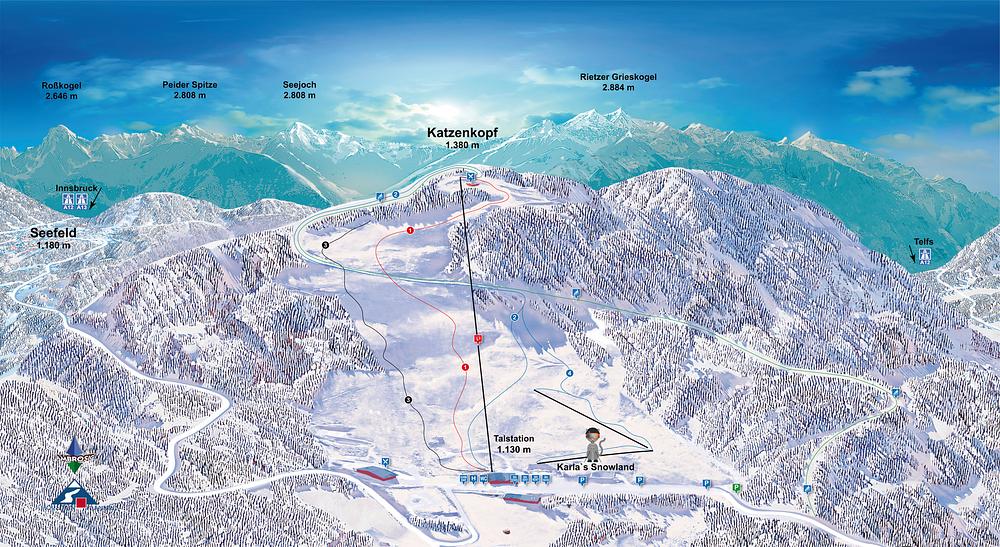 Skigebiet Leutsch - Katzenkopflift is a ski resort in Leutasch, Austria, offering 3.2 km of slopes for skiing and snowboarding. The resort has 3 lifts, including a triple chairlift, and is suitable for beginners. The area has a variety of trails, including a blue, red, and black run, and offers stunning views of the surrounding landscape. In the summer, the resort offers mountain biking and hiking trails, as well as a disc golf course. The Katzenkopf Leutasch is a family-friendly destination with plenty of activities for all ages.