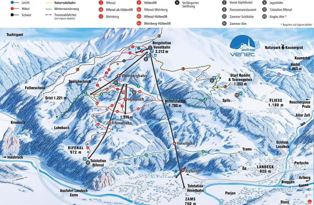Here's a 50-100 word summary of Venet ski resort in Zams, Austria: Venet ski resort in Zams, Austria, is a compact and easily accessible mountain perfect for families and cruisers. It offers 22 km of groomed pistes, two funparks, and off-piste ski touring opportunities. The resort is part of the Kaunergrat Nature Park and provides panoramic views. With 9 trails and a variety of slopes for all levels, Venet promises a fun skiing experience. The resort is located near the transport hub town of Landeck-Zams, making it a convenient destination for skiers. It's a great option for those seeking a relaxed and enjoyable skiing experience.