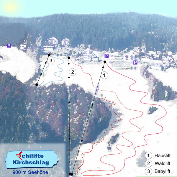 Schilifte Kirchschlag is a small ski resort located in Kirchschlag bei Linz, Upper Austria. It offers 5 slopes with a vertical descent of 150 meters, serviced by 7 lifts. The resort is easily accessible from Linz, just 10 km away, and is a popular destination for skiers and snowboarders from the area. Lift ticket prices vary depending on the time of day, with hourly tickets available from €20-24 for adults and €17-21 for seniors. The resort is open, but please check current Covid safety measures before visiting.