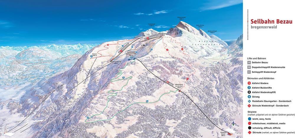 Andelsbuch (Bezau) is a ski resort in Vorarlberg, Austria, offering 3.9 km of slopes and 3 km of ski routes. The Niedere-Andelsbuch/Bezau ski area is a diverse ski zone with a double chairlift, suitable for skiers and powder snow enthusiasts. The resort is situated 1.5 km from the village center, with a range of pistes for all levels and a family-friendly atmosphere.