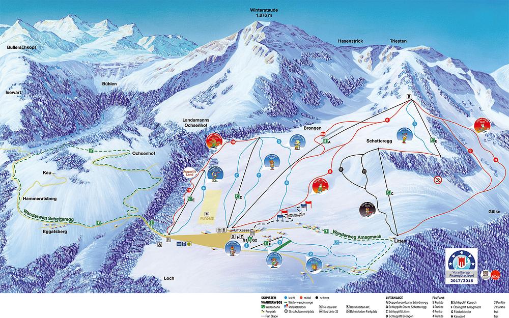 Schetteregg is a family-friendly ski resort in the Bregenzerwald region of Austria, offering 10 kilometers of slopes at an altitude of 1,100 to 1,400 meters. The resort features six lifts and a variety of pistes, including some specifically designed for families with children. The vertical drop is 300 meters, and the day pass is relatively affordable at €46. The resort is known for its snow-secure and family-friendly atmosphere, making it a popular destination for families and beginners.