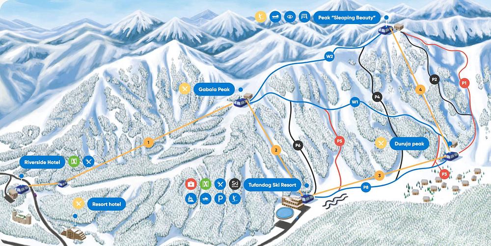 Tufandag Mountain Resort in Azerbaijan is a 4.6-star rated ski resort located in the Qabala District. It offers 12.3 km of slopes for skiing and snowboarding, with 4 lifts transporting visitors to the top. The resort is situated near the village of Duruja and features a summer-winter recreation complex, hotels, a spa, and leisure activities. Tufandag Mountain Resort is known for its unique slopes and scenic views, making it a popular destination for adventure-seekers and nature lovers.