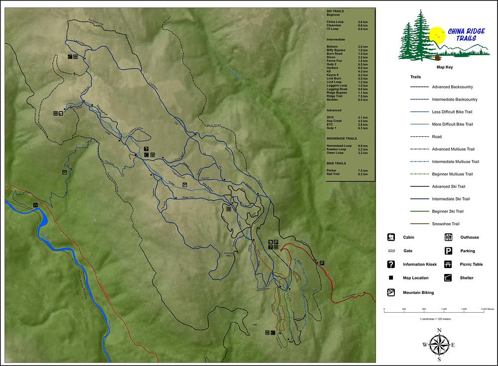 China Ridge (Snowpatch) is a ski resort located in the Similkameen Valley of British Columbia, Canada. The resort offers a variety of trails for all skill levels, with groomed runs off the T-bar being a highlight. The area features 45 km of well-maintained hiking, skiing, and riding trails, as well as 19 un-groomed trails. It's a popular destination for outdoor enthusiasts, offering activities like camping, skiing, snowshoeing, and dark sky watching.