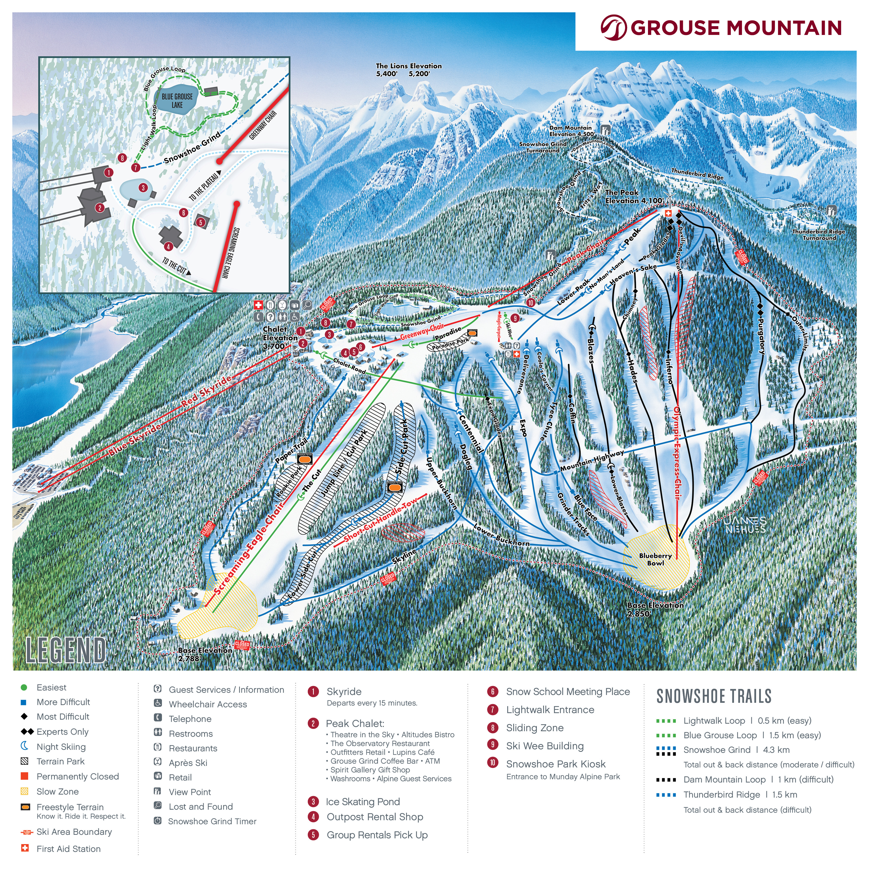 Grouse Mountain is a 1,200-meter mountain in North Vancouver, British Columbia, Canada, offering year-round activities such as skiing, hiking, and wildlife viewing. The mountain features a wildlife refuge, diverse dining options, and thrilling outdoor adventures. Visitors can enjoy panoramic views of Vancouver and explore the mountain's summit via the Skyride gondola. With over 1.3 million annual visitors, Grouse Mountain is Vancouver's most popular attraction, providing a fun and social environment for all ages.