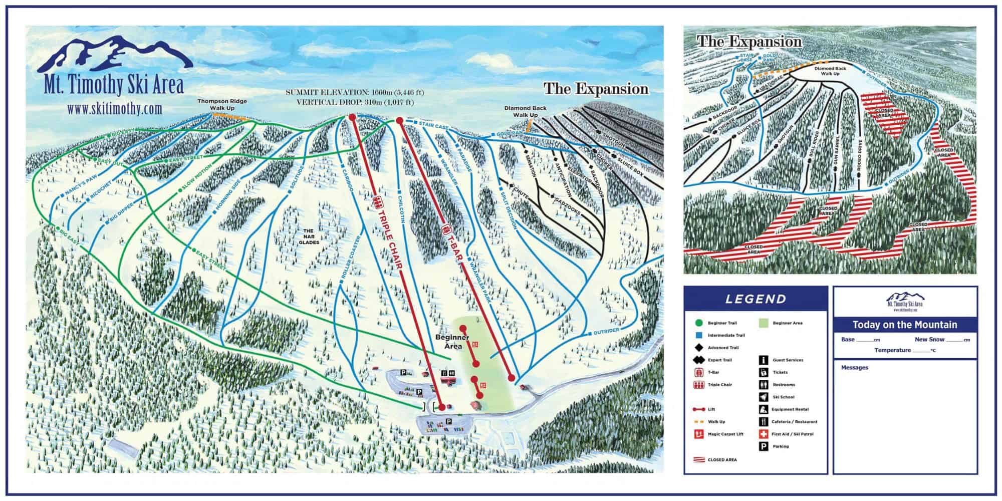 Mount Timothy is a family-friendly ski resort located in the South Cariboo region of British Columbia, Canada. It offers diverse slopes, cozy cabins, and a tubing hill in the scenic Cariboo range. The resort provides an affordable and relaxed skiing experience, with no long line-ups. With a vertical drop of unknown height, Mount Timothy is a great destination for families and those seeking a peaceful skiing experience.