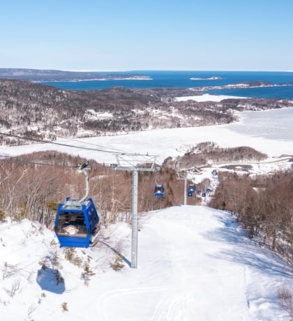 Ski Cape Smokey is a premier ski resort destination in Atlantic Canada, located on Cape Breton Island's northeast coast. It offers exceptional skiing and snowboarding from mountain to ocean, with breathtaking views of the Atlantic Ocean and the Cape Breton Highlands. The resort features a gondola, trails for all skill levels, and a variety of activities, including snowshoeing, hiking, and kayaking. With its highest elevation at over 320 meters, Ski Cape Smokey is Nova Scotia's highest elevation ski mountain.
