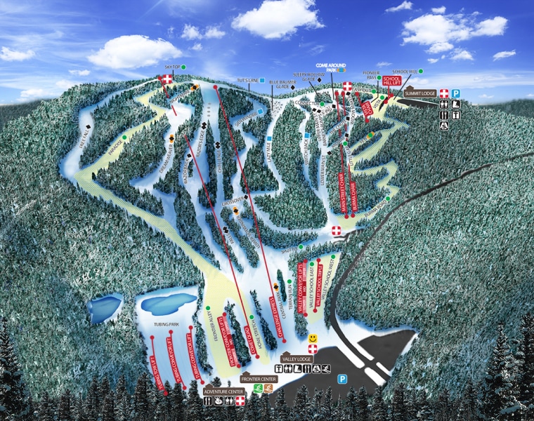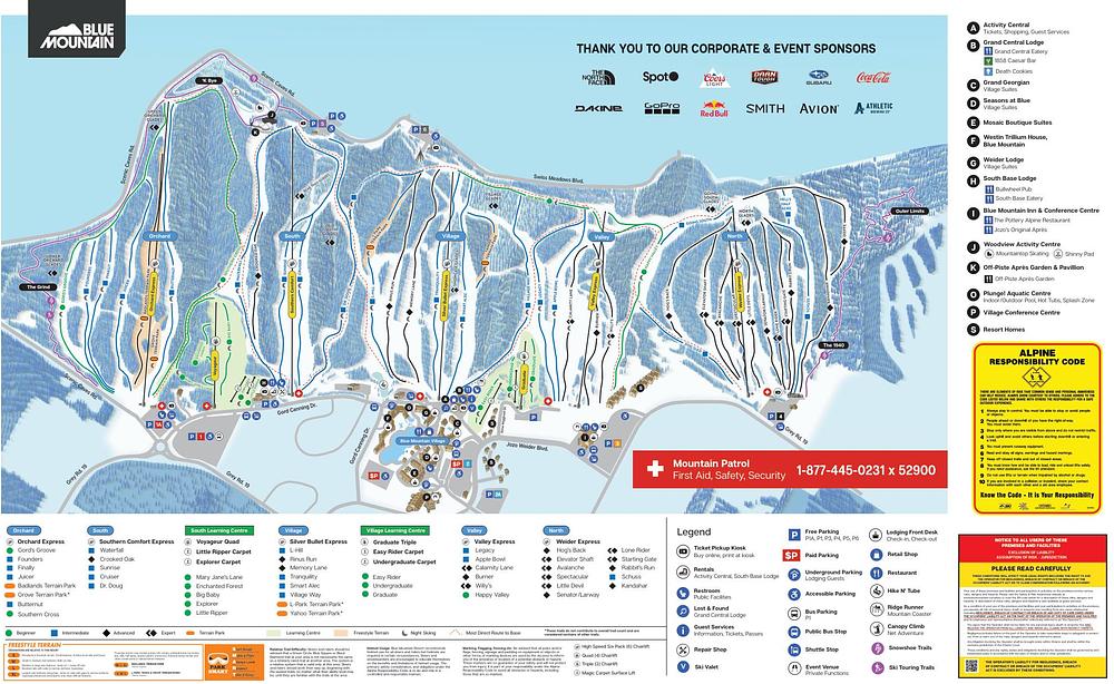 Here's a 50-100 word summary of Blue Mountain Ski Resort: Located in The Blue Mountains, Ontario, Canada, Blue Mountain is a year-round resort that offers world-class skiing, golf, spas, and dining. With 147 hectares of skiable terrain and a vertical drop of 220 meters, it's a top family-friendly resort in Canada. The resort has 43 trails, a lift capacity of 26,750 passengers per hour, and receives 390 centimeters of snowfall annually. Visitors can enjoy a range of activities, including skiing, snowboarding, hiking, and golfing, as well as shopping and dining in the village.