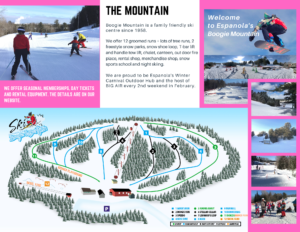 Boogie Mountain is a 4-season destination in Espanola, Ontario, offering golf and skiing in a family-friendly atmosphere. The ski hill features 12 runs, a freestyle park, and a t-bar and handle tow. With a small hill size, it's a great spot for beginners and families. The resort is open year-round, with golf season starting in the spring and skiing in the winter.
