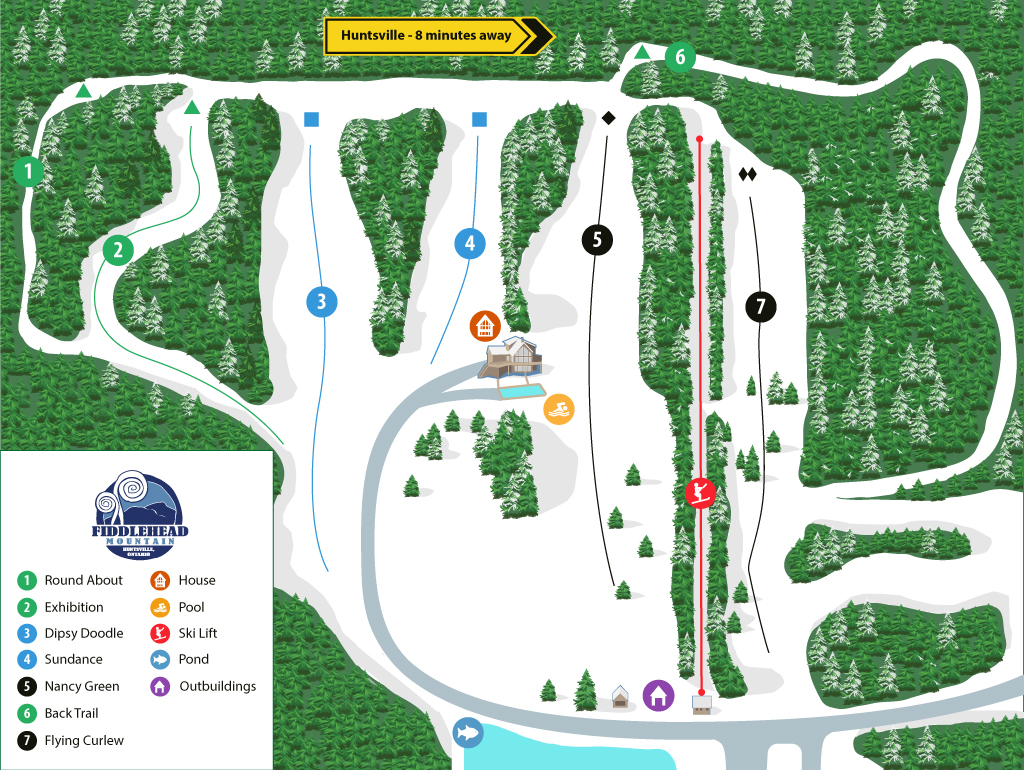 Fiddlehead Mountain is a private ski resort located in Huntsville, Ontario, Canada. The resort features a 5-run ski hill with a refurbished lift and snow groomer, as well as a 5-bedroom chalet. The property spans 123 acres and offers a unique opportunity for buyers to own a private ski resort in Ontario's Cottage Country. The resort was listed for sale in 2016 for $1.6 million, but its current status is unknown.