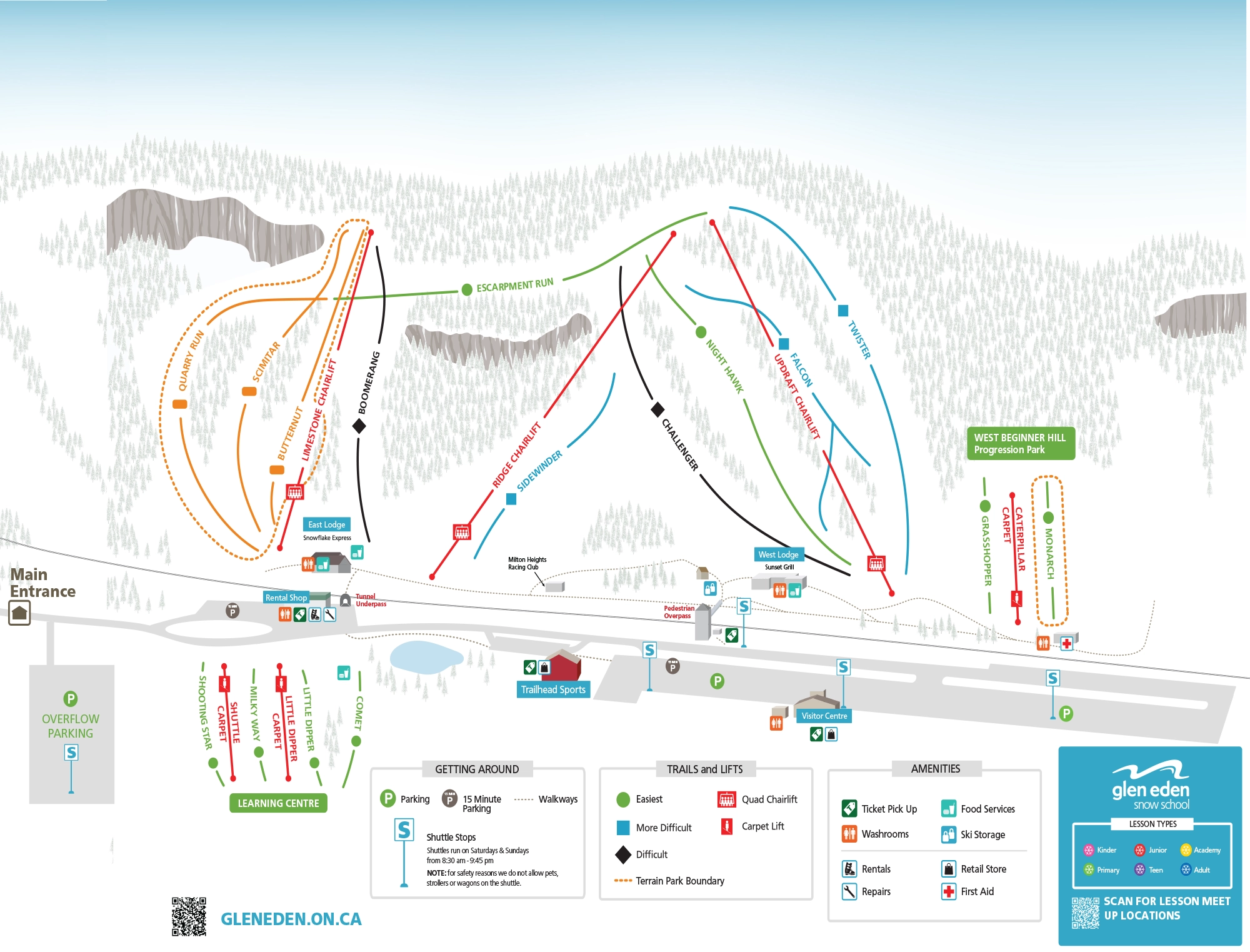 Glen Eden is a ski resort located in Milton, Ontario, Canada, offering 16 slopes and 6 lifts across 45 acres of accessible terrain. The resort features a 240 ft. vertical drop, 100% snowmaking capability, and a freestyle terrain park. With a variety of lift ticket options and rentals available, Glen Eden is a great destination for skiers and snowboarders of all ages and skill levels.