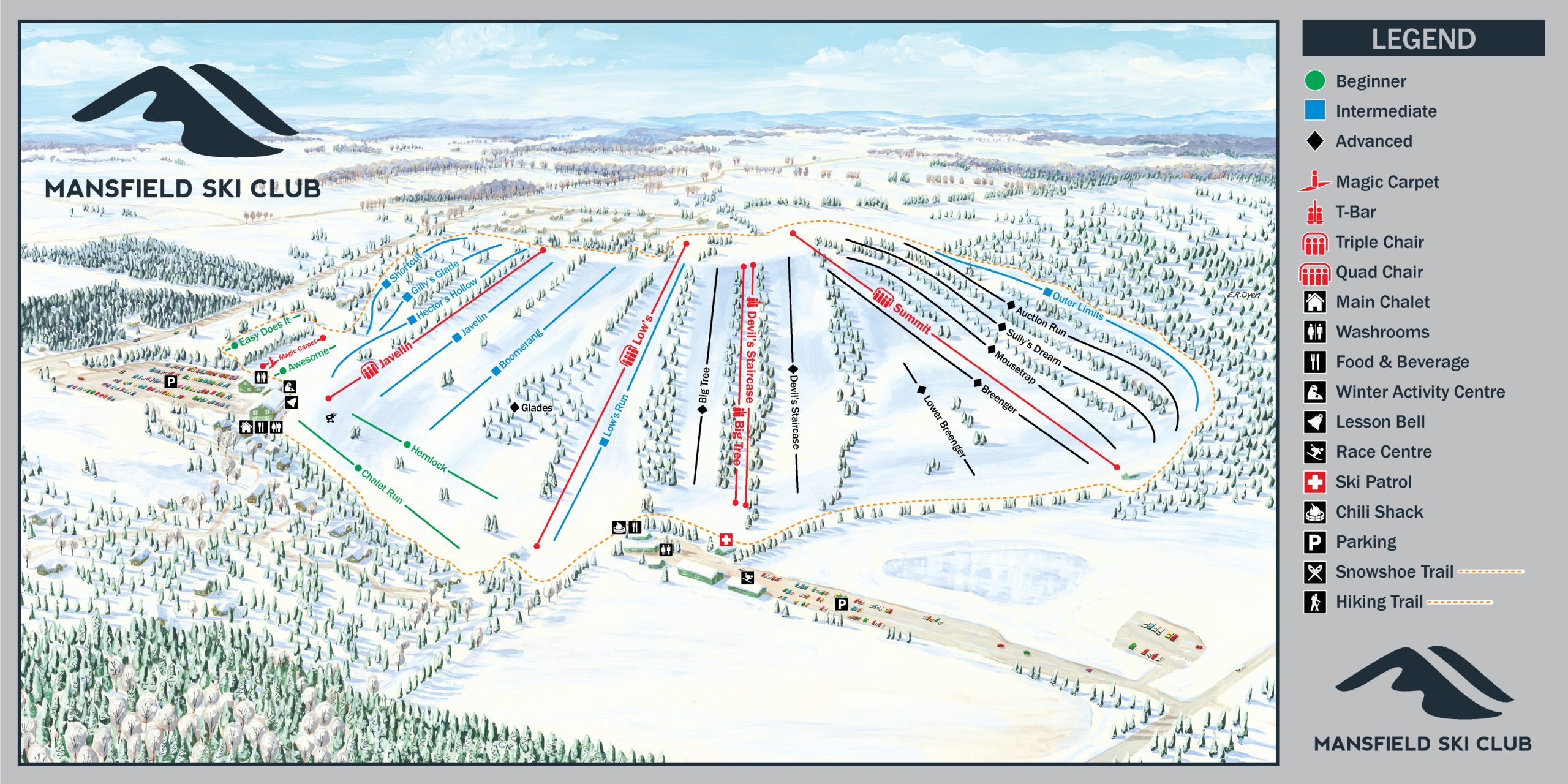 Mansfield Ski Club is a private ski club located in Mulmur, Ontario, Canada, about an hour north of Toronto. The club features 18 groomed runs serviced by 6 lifts, offering a family-friendly atmosphere and a variety of amenities, including 4 food and beverage outlets and a Snow School for lessons. With a focus on exclusivity and personalized service, Mansfield Ski Club is a great option for those seeking a more intimate and uncrowded skiing experience.
