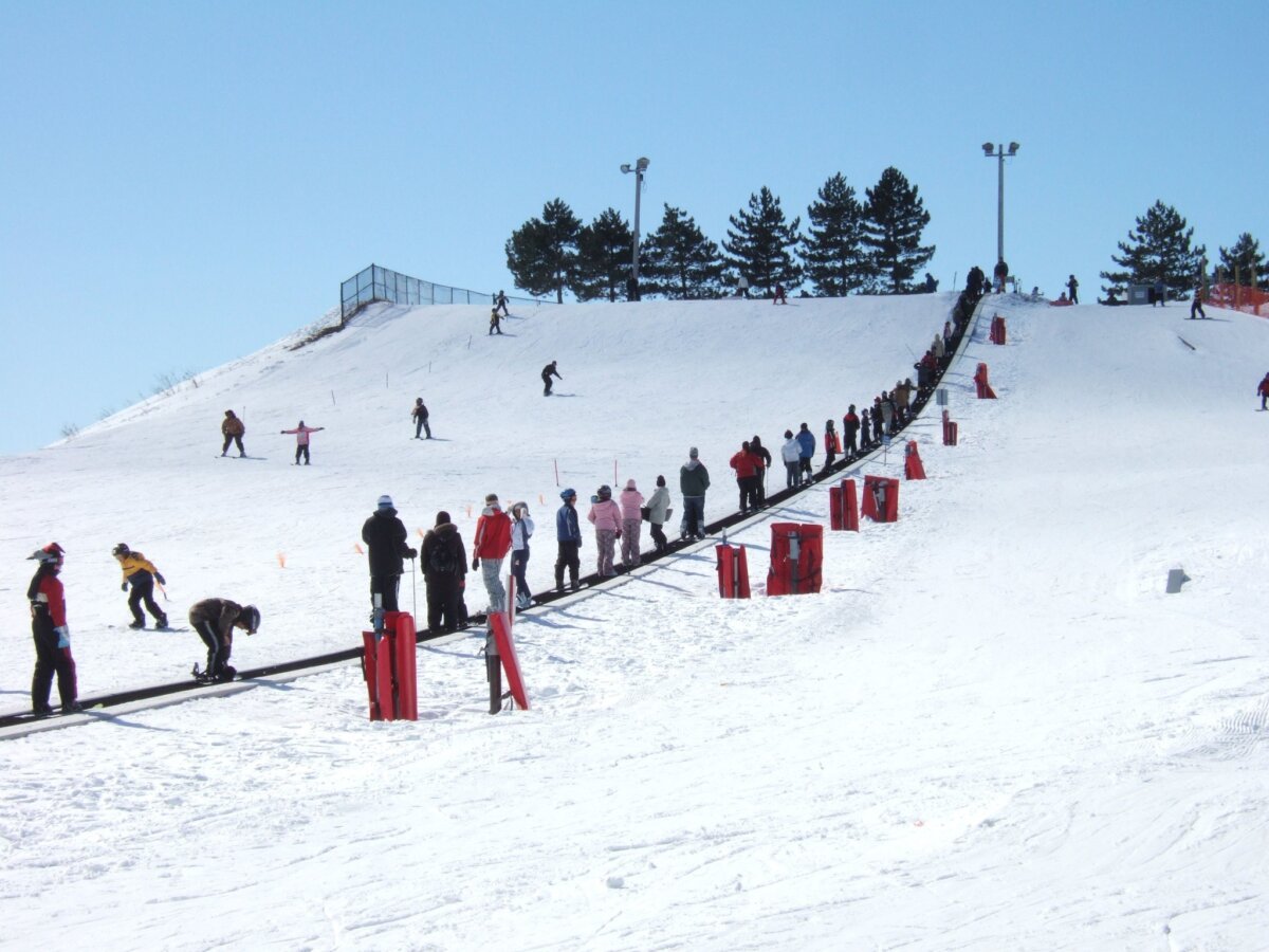 Mount Chinguacousy is a small ski hill located in Chinguacousy Park, Brampton, Ontario, Canada. It's approximately 20m (65ft) high and suitable for beginners. The hill offers skiing, snowboarding, and snow tubing, with 0.1km of slopes and 2 lifts. A two-story chalet on site provides a winter atmosphere. The hill is open seasonally, with daily operations affected by weather and snow conditions.
