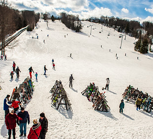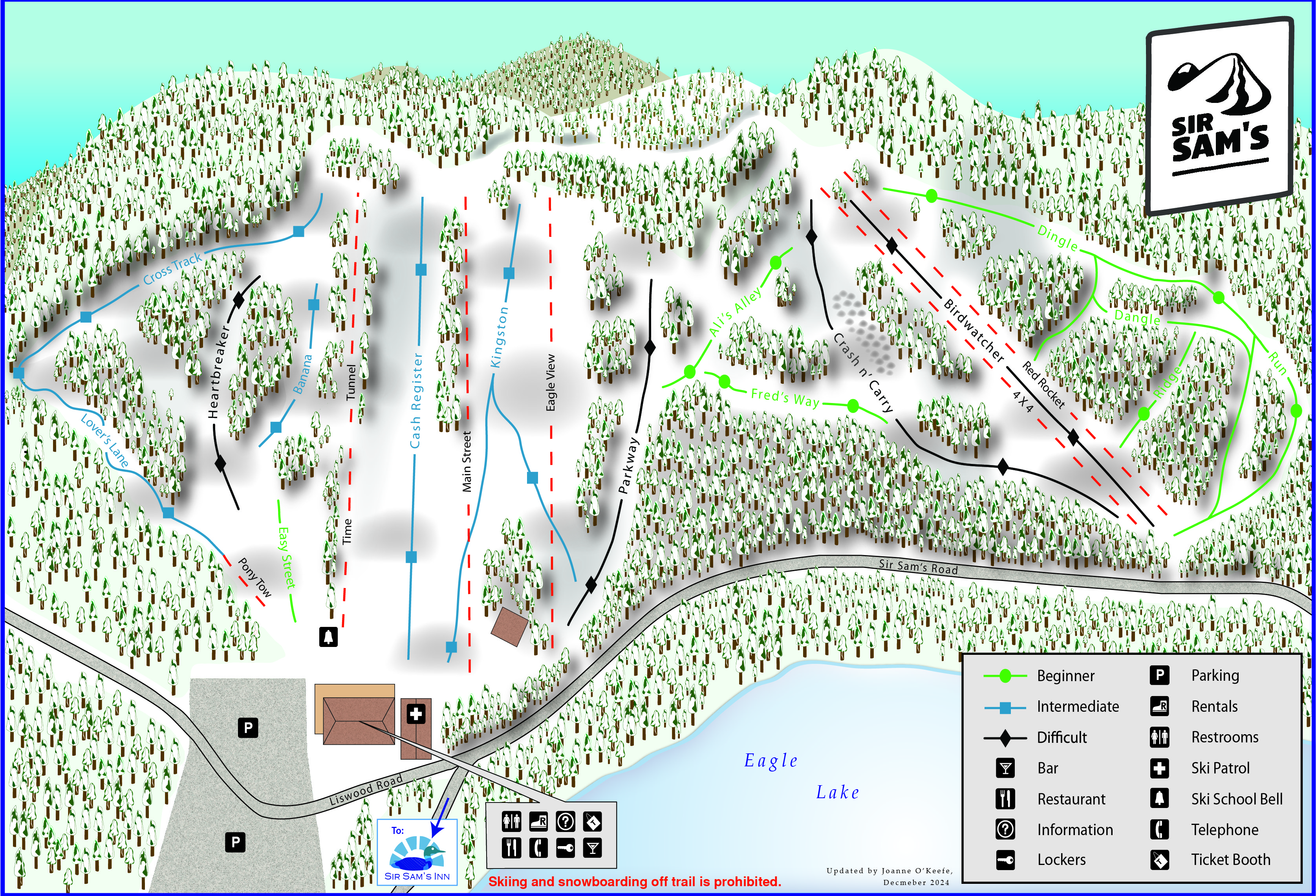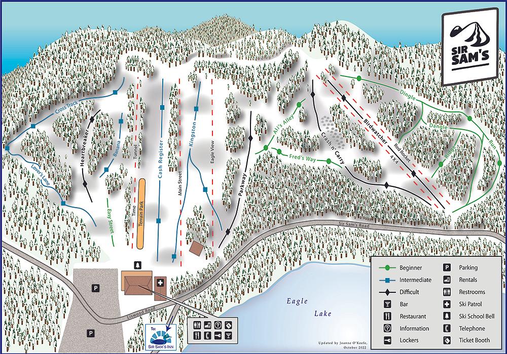 Here's a 50-100 word summary of Sir Sam's: Sir Sam's Ski / Ride is a family-friendly ski resort in the Haliburton Highlands of Ontario, Canada. With 14 runs and a mix of open and intimate trails, it offers skiing and snowboarding for all abilities. The resort features a variety of programs for beginners to advanced skiers and a scenic Eagle View Observation Tower. In the summer, visitors can hike, bike, or explore the surrounding area. The resort also offers accommodations, dining, and a spa, making it a great destination for a family vacation or couples retreat.
