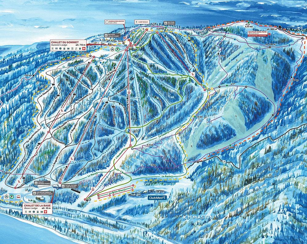 Le Massif de Charlevoix is a ski resort located in Petite-Rivière-Saint-François, Quebec, Canada. It boasts an expansive ski area with 53 trails spanning 406.3 acres, offering an incredible skiing experience with a 2,625-foot vertical drop, the highest east of the Canadian Rockies. The resort has a reputation for having the best snow conditions in the region and is known for its scenic views of the Saint Lawrence River. With a variety of trails for all skill levels, Le Massif is a must-visit destination for skiers and snowboarders.