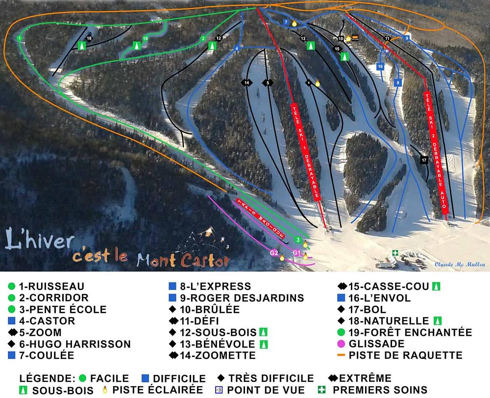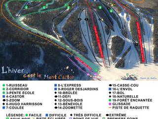 Mont Castor is a recreation center located in Saint-Gabriel-de-Valcartier, Quebec, Canada. It offers a variety of activities including cross-country skiing, golf, mountain biking, and more. The center has 95 km of cross-country skiing trails, 19 slopes, and a snow park. Visitors can also enjoy equipment rentals, a restaurant, and a bar. The center is open to the public and is situated at the foot of Mont Brillant on the Valcartier military base.