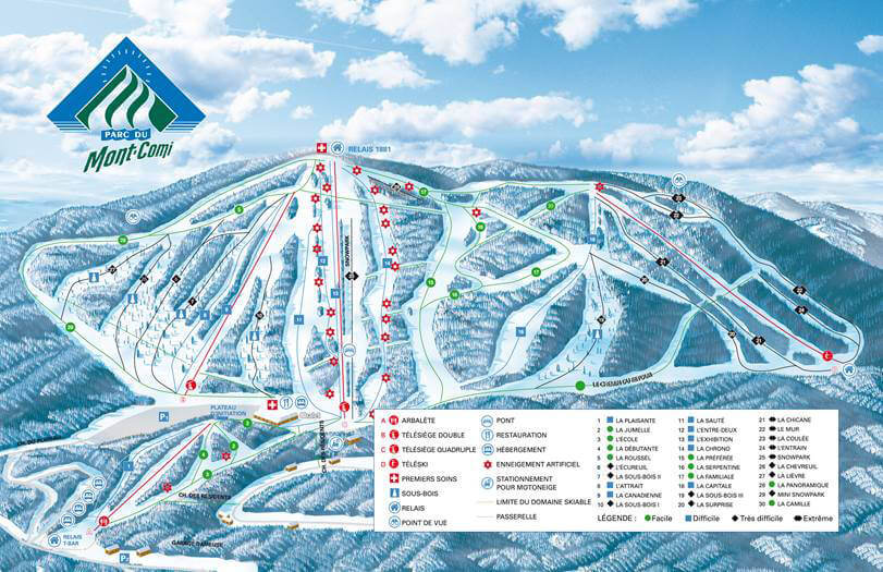 Parc du Mont-Comi is a ski resort located in Saint-Donat, Quebec, Canada, in the Bas-Saint-Laurent region. It offers a wide range of activities, including alpine skiing, snowboarding, and hiking, with 14 km of slopes and 4 lifts. In the summer, the park offers mountain biking and hiking, with a chairlift open for cyclists and hikers on Sundays. The resort has a 4.6-star rating and is known for its natural snow quality, making it a popular destination for outdoor enthusiasts.