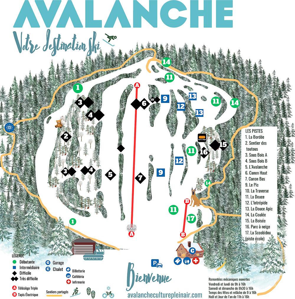 Ski Mont Avalanche is a mountain resort located in Saint-Adolphe-d'Howard, Quebec, about an hour's drive from Montreal. It features 7 km of slopes, 2 lifts, and a variety of winter activities including downhill skiing, snowboarding, backcountry skiing, snowshoeing, and fat biking. The resort offers a range of trails for all skill levels, including a beginner's hill with an electric carpet. With a 4.2-star rating on AllTrails and 4.5-star rating on Google, Mont Avalanche is a popular destination for outdoor enthusiasts and families.