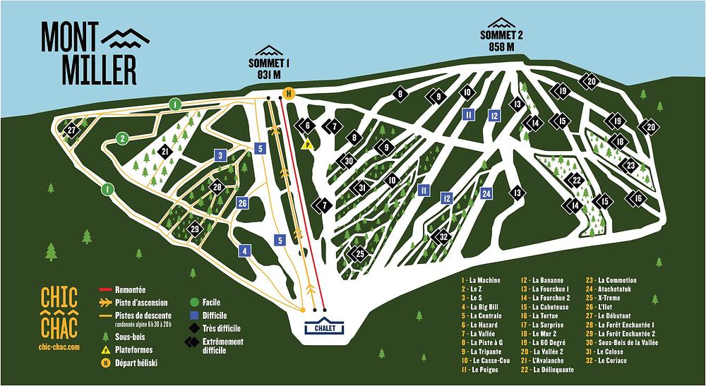 Here's a summary of Station de ski Mont Miller in 50-100 words: Located in Murdochville, Quebec, Canada, Mont Miller is a 100% natural snow ski resort with a 180-meter vertical drop and 32 trails and glades. The mountain is served by a T-bar lift. The resort offers a range of skiing and snowboarding options for all levels, including glades and Supernatural-style platforms. With a variety of accommodations available, including ski-in/ski-out options, Mont Miller is a great destination for those looking for a natural skiing experience in the Chic-Chac mountains.