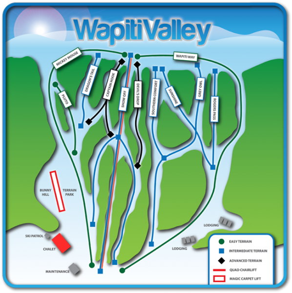 Wapiti Valley Regional Park in Saskatchewan, Canada, is a four-season destination offering a range of activities including skiing, snowboarding, fishing, and ATV trails. The ski resort features 15 groomed trails, a quad chairlift, and a magic carpet lift, catering to both beginner and advanced skiers and snowboarders. With a restaurant and chalet on site, Wapiti Valley is a great spot for families and those looking for a fun winter experience.