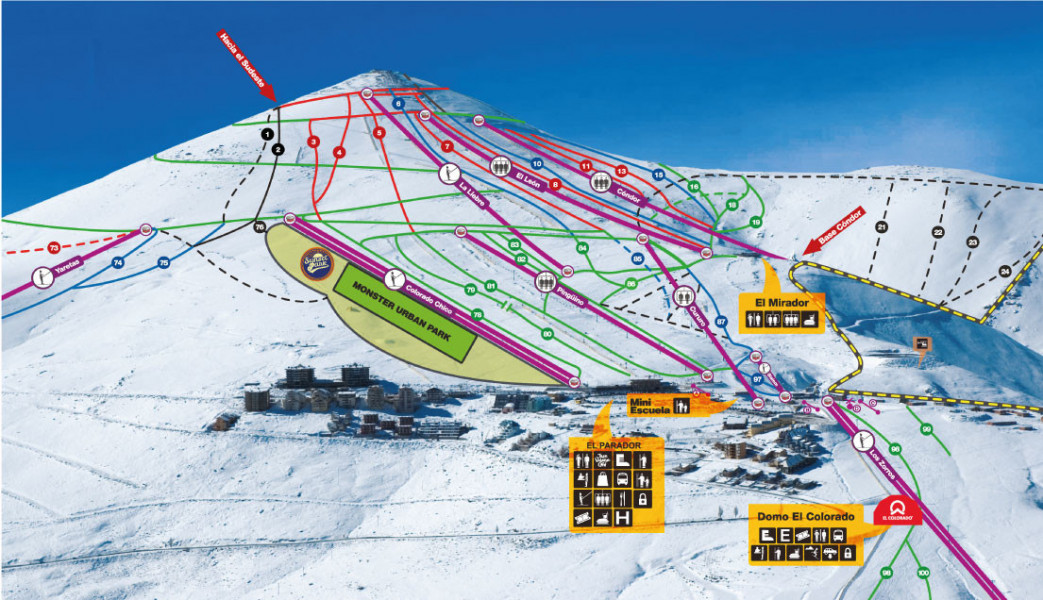 Farellones is a charming village and ski resort nestled in a valley in the Andes mountains, 36 km from Santiago, Chile. It offers a range of winter sports, including skiing and snowboarding, with a cable car system connecting to El Colorado hill's ski runs. In the summer, visitors can enjoy hiking, cycling, and zip-lining. The village features rustic hotels, cozy restaurants, and a relaxed atmosphere, making it an ideal destination for families and outdoor enthusiasts.