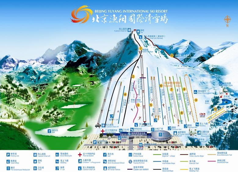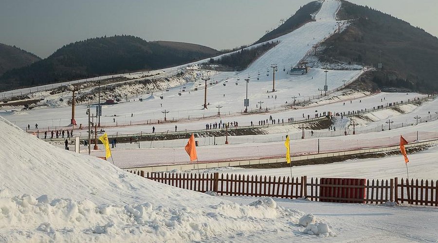 Beijing Yuyang Resort is a ski resort located in Pinggu District, Beijing, China. It offers 4 km of slopes for skiing and snowboarding, catering to beginners, intermediate, and advanced skiers. The resort features 11 trails, with the longest one being 3,200 meters long. It's situated near the scenic Qinglong Mountain and offers a tropical restaurant with a big dining area. The resort is about 70 km northeast of Beijing city center, making it a convenient day-trip destination.