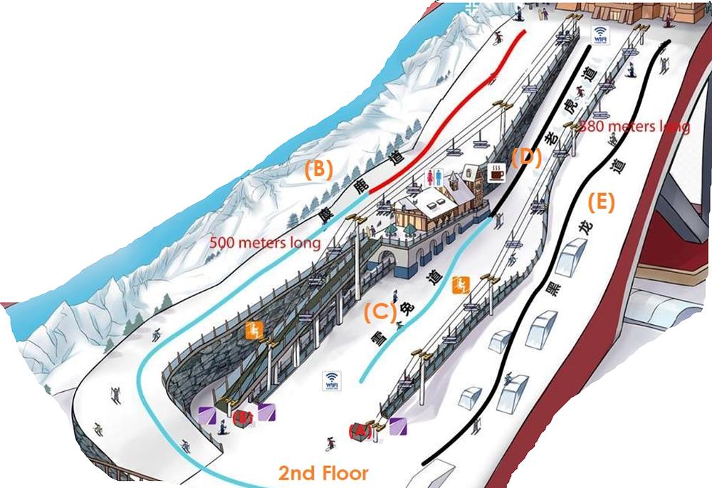 Wanda Harbin (Indoor) is a massive indoor ski resort located in Harbin, China. It boasts six ski slopes up to 500m long, including some of the steepest indoor slopes ever built. The resort can accommodate over 3,000 skiers and snowboarders and offers a range of amenities, including a reception service area and snow sports facilities. With a floor area of 80,000m², it is considered the largest indoor ski resort in the world.