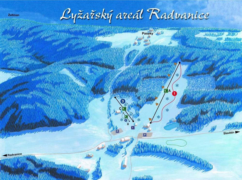 Radvanice is a ski resort located in the Hradec Králové Region of the Czech Republic. It offers skiing opportunities in the Jestřebí Mountains, with slopes ranging from 550 to 650 meters above sea level. The resort has a J-bar lift and several ski runs, including red runs. Radvanice is open from mid-December to mid-March, with opening hours from 9:00 AM to 4:00 PM. The resort also offers a restaurant and other amenities.