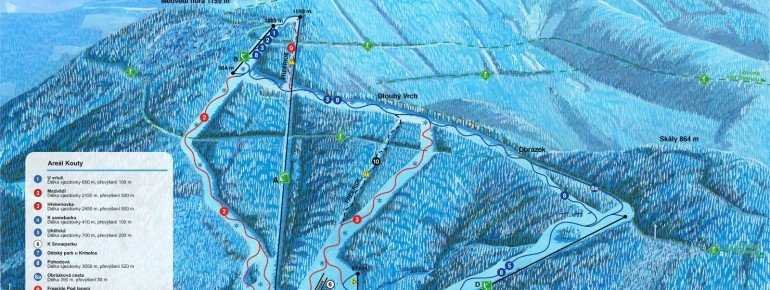 Kouty ski resort in the Czech Republic offers a range of slopes for all skill levels, with 11.5 km of pistes and a 3 km long ski slope. The resort features a modern six-seater lift and several restaurants and bars. It's described as simple, quiet, and offering good variation of slopes, with fast main lift service. The resort is located in the Olomouc Region and is considered the biggest ski resort in Moravia.