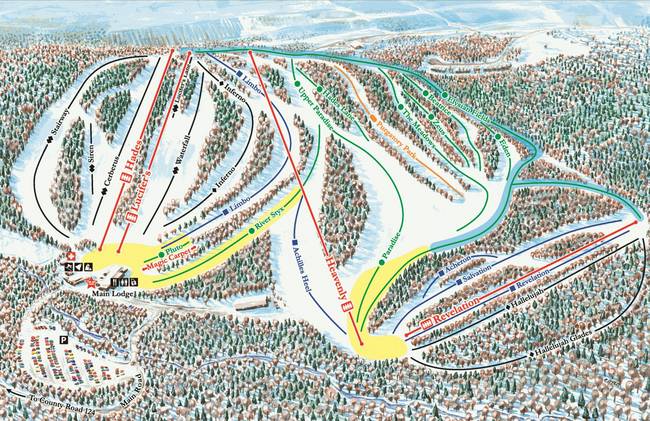 Lucifer is a ski resort located in Josefův Důl, Czech Republic, offering 0.8 km of slopes and 4 lifts with a capacity of 3500 persons per hour. The resort has 3 skiing areas, including Ski LUCIFER, JATKA, and BUKOVKA, with 6 downhill routes. It's situated between elevations of 700 and 1,100 meters, providing stunning views of the surrounding landscape. The resort is suitable for skillful skiers and offers a range of amenities, including a restaurant and ski rentals.