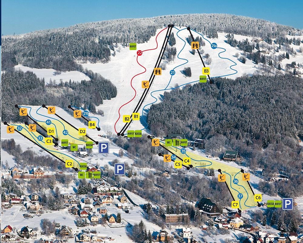 Skicentrum Petr Udatný is a ski resort located in Rokytnice nad Jizerou, Czech Republic. It offers 1.5 km of slopes and 5 lifts, with a variety of winter sports options, including skiing and snowboarding. The resort is situated between 700 and 1,200 meters above sea level, providing a range of terrain for different skill levels. While it may not have many beginner-friendly slopes, it's a good experience for those who visit.