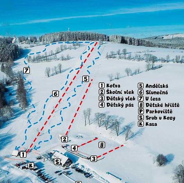 Here's a summary of Ski Annaberg in 50-100 words: Ski Annaberg, located in the Jeseníky Mountains, Czech Republic, offers 1.5 km of slopes for skiing and snowboarding. The resort has 2 lifts and three slopes of varying difficulty levels. The ski area is situated at an elevation of 860 meters and offers pleasant snow conditions and easy accessibility. The resort is suitable for families and offers a pleasant atmosphere with sunny slopes. It's a great option for those looking for a smaller, more intimate skiing experience in the Czech Republic.