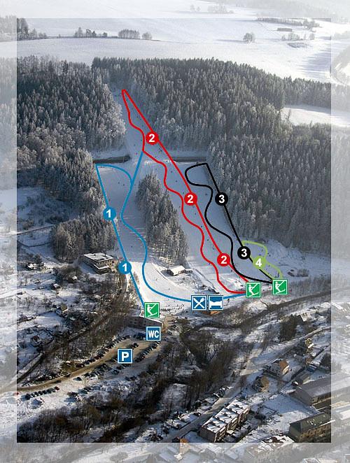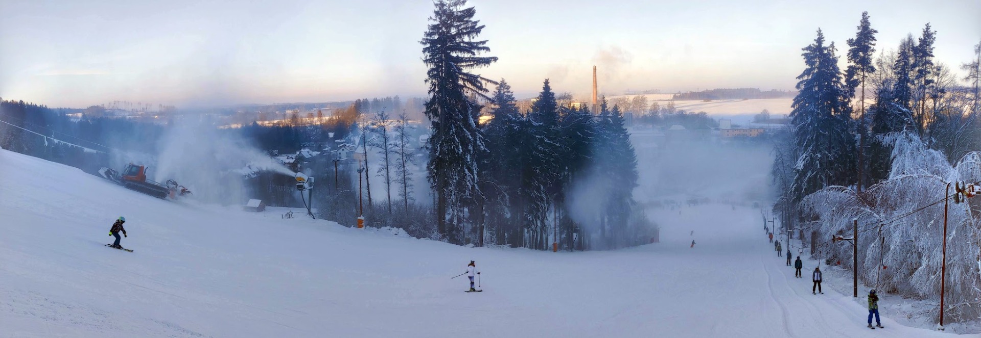 Hlinsko is a ski resort located in the Pardubice Region of the Czech Republic, offering 1.2 km of slopes for skiing and snowboarding. The resort features three slopes, including a blue, red, and black run, with the highest altitude reaching 950m. It's a relatively small resort, but suitable for families and beginners, with a children's lift and free WiFi available.