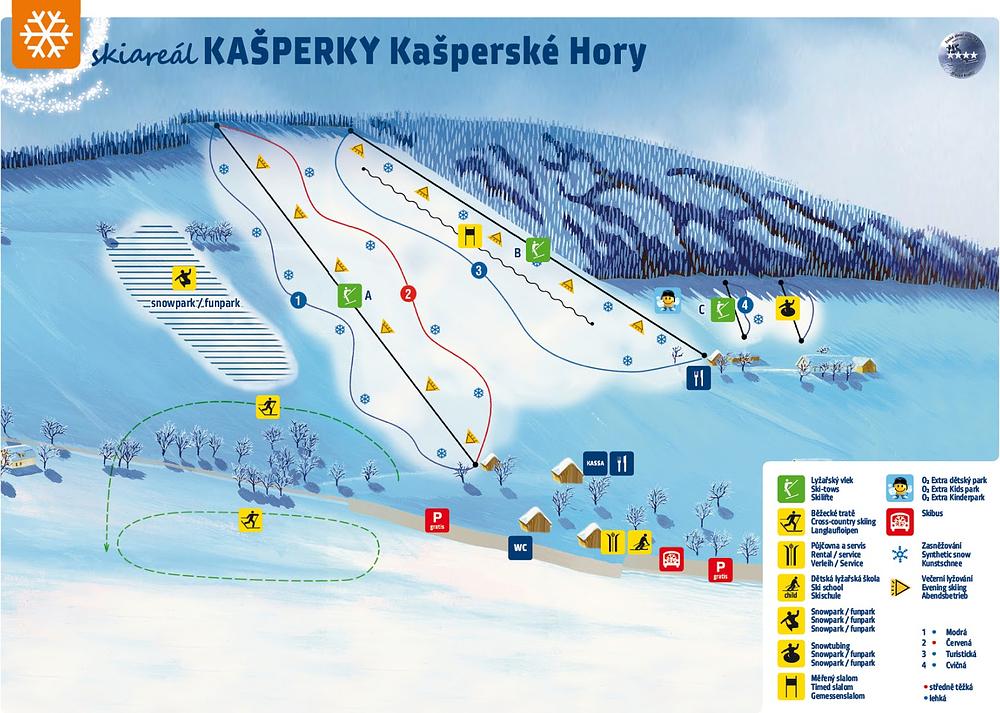 Kašperské Hory is a ski resort located in the Plzeň Region of the Czech Republic. It features 1.9 km of slopes, including two blue runs and one red run, making it suitable for novice skiers. The resort offers night-time skiing and a variety of slopes for all skill levels. With a modest size and gentle slopes, Kašperské Hory is an ideal destination for those looking for a relaxed skiing experience.