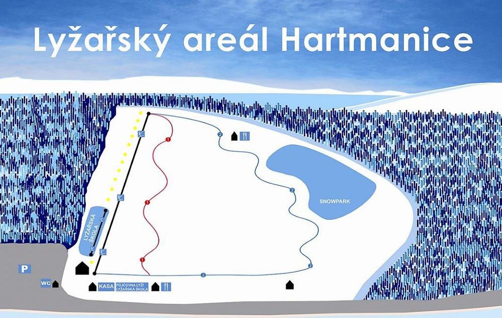 Lyžařský areál Hartmanice is a ski resort located in the heart of the Bohemian Forest (Šumava) in the Plzeň Region of the Czech Republic. It offers 1.3 km of ski slopes and 8.7 km of ski trails, with night skiing available. The resort has 1 cable car and 1 lift, and is situated 0.4 km from the village center.