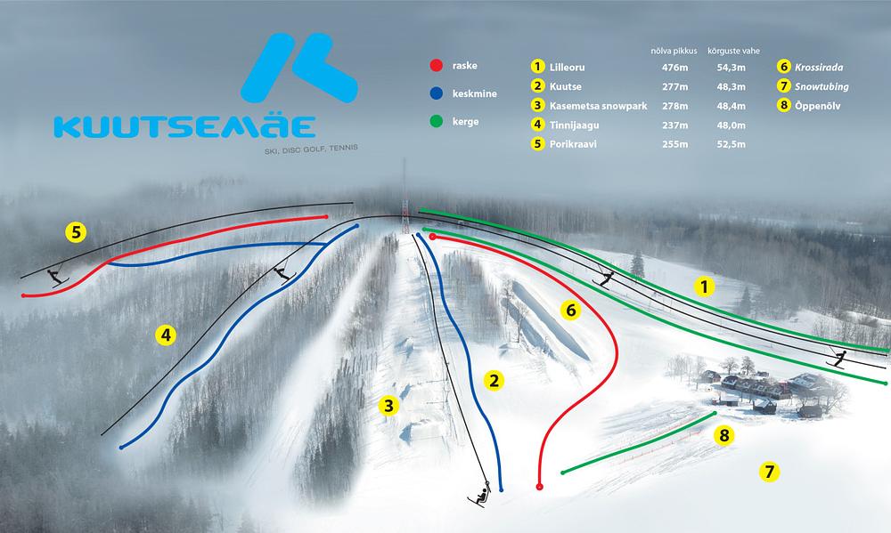 Kuutsemae is a ski resort located in Arula, Valga County, Estonia. It offers a range of winter sports, including skiing and snowboarding, as well as boat rides and relaxation opportunities amidst nature. The resort has 2.3 km of slopes and 5 lifts, with elevations ranging from 163 to 217 meters. Kuutsemae is a popular destination for a relaxing break or an active holiday, all year round, and is situated 14 km from the center of Otepää.
