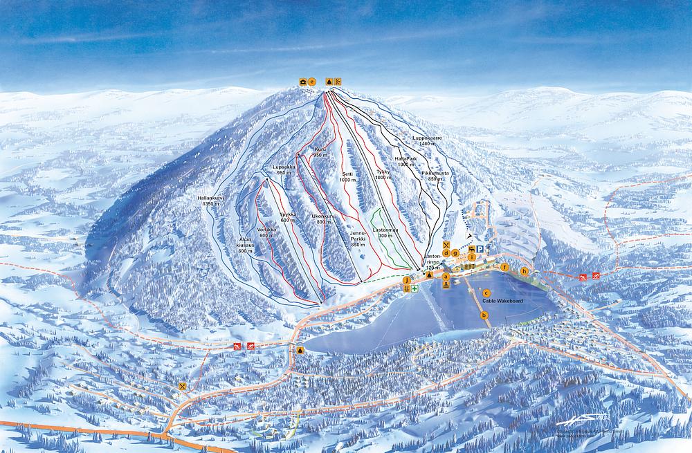 Hiihtokeskus Ukkohalla is a ski resort located in Hyrynsalmi, Kainuu, Finland. It offers a range of winter sports activities, including downhill and cross-country skiing, snowboarding, and wakeboarding. In the summer, visitors can enjoy hiking and other outdoor activities. The resort has 13.1 km of slopes and 5 lifts, making it a great destination for skiers and snowboarders of all levels. The resort also features a small spa and sauna, and accommodations such as chalets and holiday apartments are available.